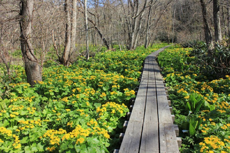 面積3.3㎢の「うぐい沼」を中心に整備された自然あふれる公園。沼には昔々竜神が住んでいたという伝説が残り、アイヌの時代から「カムイ・ルル・トウ=神が魚をもってくる沼」と呼び大切にされてきた。水面に大小数個のハンの木やヤチダモが生い茂る浮島が点在し、風と共に湖面をゆったり静かに漂う風向明媚な佇まいを見せる。春は湿原に群生する水芭蕉のほか、黄色い花をつけた「エゾノリュウキンカ(ヤチブキ)」が咲き、道内随一の名所となっている。秋は沼を取り囲む木々が色づき紅葉散策も楽しめる。周辺は野鳥の宝庫としても知られ、クマゲラ・カワセミ・ヤマセミ等が生息し、渡り鳥の中継地にもなっている。